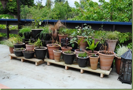 At disse plantene har overlevt mai er egentlig et under! Men nå skulle varmen komme, ikveld betyr det mer regn.. Men bare det blir tørrt skal disse pallene males brune.